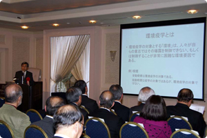 続 いて、新田氏のご研究について、「大気汚染というグローバルに拡大しつつある公衆衛生の課題について、長年にわたる環境疫学のご研究業績は、国際的に高い 評価を得たと同時に、わが国の大気汚染防止対策の立案や環境基準設定などに大きく貢献された」と述べ、深い敬意と祝辞を述べました。